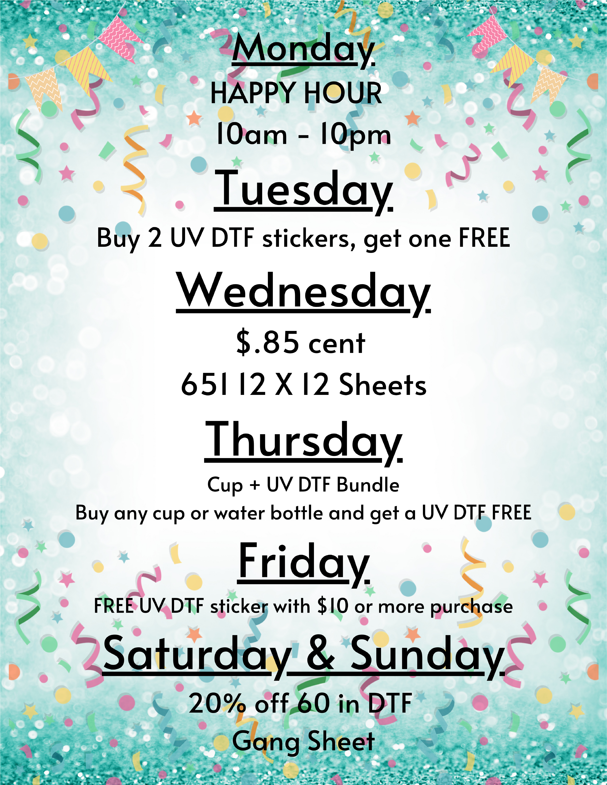 Store Hours: (M-F) 10AM - 5:30PM Closed Sat & Sun