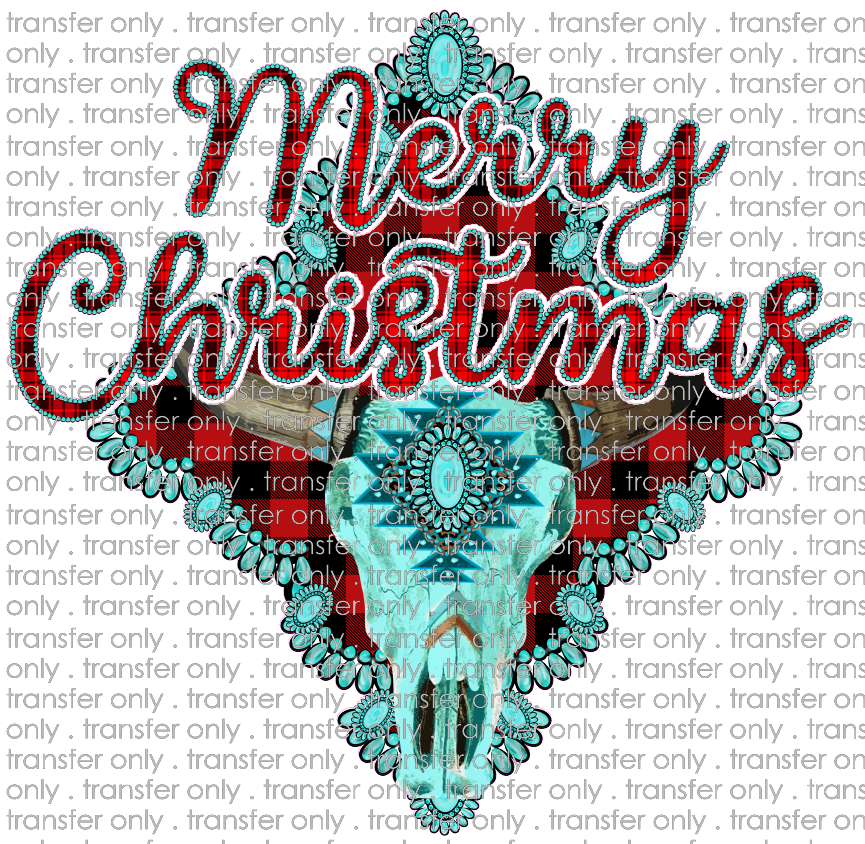 CHR 683 Merry Christmas Blue Western Skull