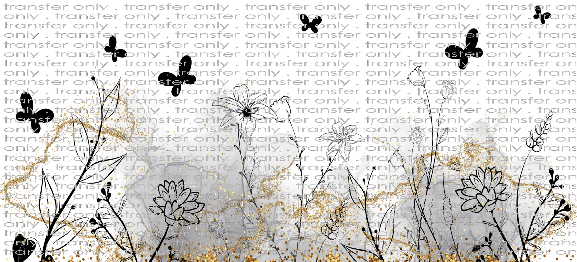 FLW UV 163 Gray Marble Black Butterflies and Flower Stems UV DTF 16oz Wrap